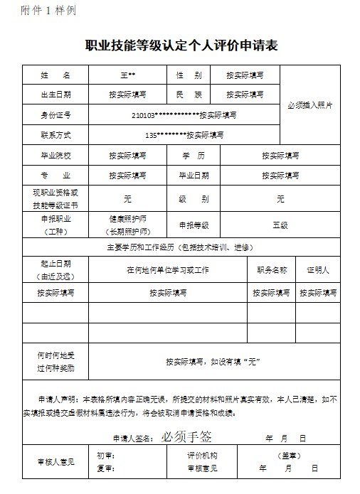 (3)职业技能等级认定个人评价申请表(见附件1)如实填写、签字,并上传PDF版文件。